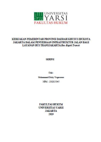 | KEBIJAKAN PEMERINTAH PROVINSI DAERAH KHUSUS IBUKOTA JAKARTA DALAM PENYEDIAAN INFRASTRUKTUR JALAN BAGI LAYANAN BUS TRANSJAKARTA/Bus Rapid Transit | |